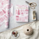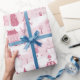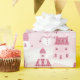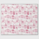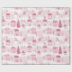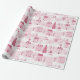 Uma vila de Natal rosa e giro com fundo branco nevado, pontilhado com homens de neve sorrindo, árvores rosa brilhantes e casas adoráveis.