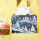 Um impressão macio e colorido para encantar as crianças - uma vila cor pastel em uma nevasca azul da meia-noite. Imagem perfeita.