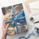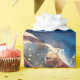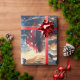 A whimsical decoupage design featuring Alice walking along a woodland path lined with red cap mushrooms, capturing the magical charm of Wonderland.