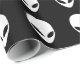 O papel de envolvimento estrangeiro preto e branco da cara do divertimento é distante para fora equipa lá! Este papel de embrulho legal caracteriza as caras estrangeiras cinzentas tradicionais com olhos roxos escuros assustadores. A deve ter para qualquer um que ama a ficção científica ou a acredita na vida estrangeira e nos UFO.