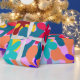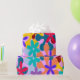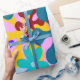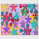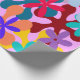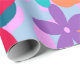 Este papel de embrulho tem um design retroativo dos anos 70 de flores sobrepostas em vermelho, azul, roxo, amarelo, laranja e vermelho. Colorida, brilhante e divertida.