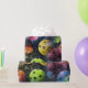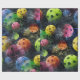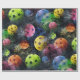 Um design artístico divertido com grandes bolas de picles multicoloridas em tons vibrantes de amarelo, verde, azul e rosa em um fundo preto contrastante. O papel perfeito para qualquer entusiasta do piquete.