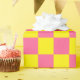 Arte digital abstrato de quadrados amarelos e cor-de-rosa em uma formação controlada.