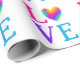 Coração colorido desenhado digitalmente à mão com um brilhante gradiente do arco-íris como o O na palavra AMOR!. Projetado no estado de Washington, EUA por uma dupla de artistas para sua diversão. Obrigados para apoiar artistas independentes!