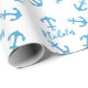 Este papel de embrulho personalizado será o toque final perfeito para a sua festa de aniversário náutica temida. Este design apresenta um padrão de âncora. Adquira a sua hoje!