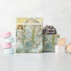 pintura de safra em pastéis com um anjo em vestido azul claro e segurando flores.