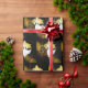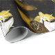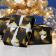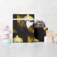 Pano Natal embrulhando papel em castanho e cor dourada, com decoração de bolbo semitransparente. Obrigados para a Creative Fabrica para alguns dos elementos na design.