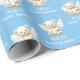 Papel De Presente Angel Teddy Bear com nome Chá de fraldas azul