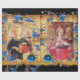 Dois anjos com cesto de rosa e música de fazer com instrumentos musicais antigos, obra-prima medieval italiana tardia de Fra Beato Angélico de Linaioli Tabernacle 1433 Italy , FLorence Itália .Elegante, clássico, brilhante e alegre design de Natal em pergaminho com os antigos motivos florais florentinos e um brilhante sapire azul 3D e rugido pedras.