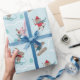 Papel De Presente Animais Cachorros Escando e Snowboard em azul