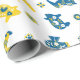 Este papel de embrulho tem um design de arte folclórica sueco de animais de fazenda Dala, em cores azuis e amarelas da Suecia. Há um cavalo, galo e porco. Espalhado por todo o padrão está também alguma arte folclórica correspondente. Você pode fazer o padrão no papel menor ou maior.
