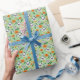 O papel de embrulho tem rostos animais bonitos do zoológico. Pandas, tigres, rinocerontes, leopardos e algumas corujas sorrateiras estão pendurados nas folhas e galhos num claro fundo verde. Vamos comemora com lindos rostos de zoo.
