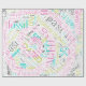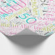 Brincar da idade de alguém é uma tradição e este papel de embrulho de cinquenta anos não é exceção com uma palavra engraçada cheio de nuvens de sinônimos para 'velho', incluindo: sem frango primavera, cortiça, dinossauro, sobre a colina e muito mais. Escolha qualquer cor de fundo que você queira acompanhar os textos rosa, turquesa, verde e preto. Procure ID266 para ver outras idades e produtos adicionais com este design.