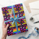 Este feliz e colorido design de papel de embrulho de aniversário apresenta um grande número "41" com um padrão inspirado no gradiente do espectro arco-íris, juntamente com a mensagem "Feliz aniversário de 41ruas", e um nome editável. O fundo apresenta um padrão de formas cardíacas com cores como rosa, roxo e vermelho. Papel personalizado de embrulho como este pode ser usado ao embrulhar presentes que estão sendo dados a alguém em comemoração de seus quarenta anos de primeiro aniversário. [~Z0000549]