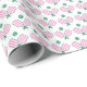 Este papel de embrulho de aniversário apresenta um padrão de pequenos redemoinhos. As cores incluem rosa e verde.