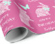 Dois coelhos de rendas brancas em um fundo rosa brilhante fazem um papel bonito de embrulho de aniversário de Páscoa. Um coelho quer ver uma borboleta verde pastel, e o outro veste um arco verde correspondente. Seu texto personalizado está em branco em dois campos. Este papel pode ser facilmente usado para Páscoa ou primavera. Mude o texto facilmente para qualquer coisa que você gostaria que fosse.
