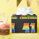 Este design de papel de empacotamento colorido, alegre e divertido, com temas de aniversário, apresenta um grande número de "41" e a mensagem "FELIZ BIRTHDAY", ambos coloridos com um padrão inspirado no gradiente do espectro do arco-íris, juntamente com um nome de destinatário personalizado amarelo ousado. O fundo é preto colorido. Um papel de embrulho divertido como este pode ser usado ao embrulhar um presente de aniversário ou presente dado a alguém que comemora seu quarenta primeiro aniversário. [~Z0000475]