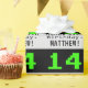 Este design de papel de embrulho de aniversário divertido e nerdy apresenta um grande estilo de vídeo de vintage verde número "14" em um fundo preto colorido. Ele também apresenta a mensagem de saudação de aniversário "Parabéns ao Aniversário do 14", e um nome que pode ser editado. O papel de embrulho temático de aniversário como este pode ser uma maneira divertida de embrulhar um presente ou de apresentar a alguém que comemora seu décimo quarto aniversário. [~Z0000403]