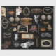 Adicione um toque pessoal ao seu presente. Vintage e artigos nostálgicos do passado decoram este presente. Quadros de ornamentado e vintage para personalização de nome.