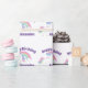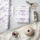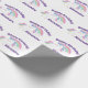 Este papel de embrulho de presente fofo e personalizado apresenta um arco-íris falso, colorido pastel, com nuvens em um padrão ladrilhado, com um unicórnio mágico e brilhante colocado sobre o topo. A frase "Parabéns" é impressa por cima da imagem do arco-íris e do unicórnio em uma fonte roxa branca com um nome de exemplo impresso abaixo em uma fonte roxa correspondente. Você pode personalizar a mensagem e o nome para incluir seu próprio nome e mensagem personalizada ou cotação.