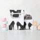 Calçados pretos de salto alto em branco com texto feliz de aniversário. A cor branca do fundo pode ser alterada.