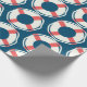 Este papel de embrulho bonito apresenta salva-vidas para um evento temático náutico
