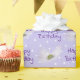 O cosmos de lavanda translúcido floresce em fundo de bolinhas roxo e branco para o aniversário. O padrão de fundo pode ser alterado.
