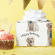 Ouro recuperador com óculos pretos e gravata riscada em fundo branco para aniversário. A cor de fundo pode ser alterada.