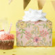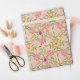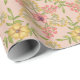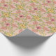 Bonito papel de embalagem cor-de-rosa floral criado com flores pintadas à mão e folhas sobre fundo rosa bonito. Arte original de Leslie Larson.