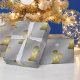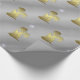 Um elegante e festivo papel de embrulho de Natal, com um padrão de amassos, anjos dourados em oração contra um fundo prateado.