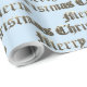Antigo idioma em inglês: Feliz Natal Papel de embrulho para presentes com legante Faux Dourado Antigo Padrão de Tipografia Inglesa em Segundo Plano Azul Bebê