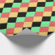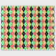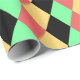 Retro Harlequin impressão em verde-menta, amarelo-milho, pêssego empoeirado e preto.