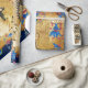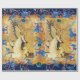 "Joy, Peace, Love" design de Natal elegante, clássico, brilhante e alegre em pergaminho com antigas florestas florais florentinas e uma brilhante pedra de safira azul 3D elaborada a partir da cena Orsini-Altar. Pintor italiano Simone Martini