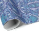 Papel de enrolamento, de padrão fresco e elegante, maçãs estilizadas, folhas e curvas de tiras brancas, boêmicas/étnicas/hippies/safras, de textura pastel desenhada à mão. Paleta de cores: tons azuis frios - indigo, denim, azure. © Clipso-Callipso / Julia Khoroshikh #bohemian #oriental #ethnicpattern #arabesque #applegreen #giftwrapping #wrappingpaper www.clipsocallipso.art