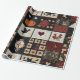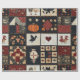 Esse papel de embrulho apresenta uma estética de retalhos de arte folclórica, organizada em uma grade de blocos quadrados que mesclam o miniaplicativo e os elementos perfurados. Os motifs Appliquéd incluem uma abóbora laranja ousada, um corvo preto, corações vermelhos, galinhas e florais estilizados, enquanto os blocos picados exibem padrões tradicionais de colcha geométrica como estrelas, diamantes e cruzes. O uso de vermelhos profundos, cremes e azuis/negros escuros, acentuados com tecidos padronizados como bolinhas, florais e sólidos texturizados, cria um estilo quente e rústico. Perfeito para decoração de fazendas, vida rural, artesanatos primitivos e colchões sazonais, este design incorpora o charme da colcha tradicional com um sentimento confortável e feito à mão.