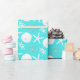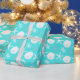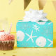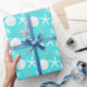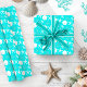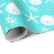 Um belo papel de embrulho de Natal costeiro apresenta um padrão de estrelas-do-mar, dólares de areia, e coral reluzente em um esquema de aqua e cor branca. *Se você quiser que este design em mais produtos ou precisar de ajuda para o design, entre em contato comigo através do Zazzle Chat.