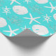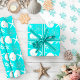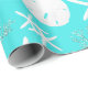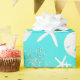 Um belo papel de embrulho de Natal costeiro apresenta um padrão de estrelas-do-mar, dólares de areia, e coral reluzente em um esquema de aqua e cor branca. *Se você quiser que este design em mais produtos ou precisar de ajuda para o design, entre em contato comigo através do Zazzle Chat.