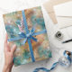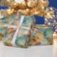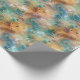 Papel De Presente Aqua Dourada Penas de Peacock