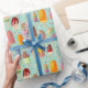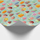 Enrole seus presentes nesta única folha de papel embrulhando - apresentando picolés e borrachas arco-íris em um fundo azul-aqua