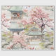 Papel De Presente Aquarela de Pagoda Asiática em meio às flores de c