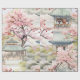 Este papel de embrulho captura uma cena tranquila com um panfleto tradicional ao estilo asiático contra um pano de fundo de florescentes flores cor-de-rosa de cereja. A delicada técnica de aquarela ressalta os intrincados detalhes arquitetônicos do pagode enquanto enfatiza a beleza macia e efêmera da sakura circundante. Inspirada pela estética do leste asiático, esta peça incorpora a harmonia entre estruturas feitas pelo homem e a natureza, refletindo temas culturais de serenidade e a natureza transitória da vida.