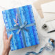 Listras Wiggly e símbolos do Aquarius zodíaco em tons de azul.