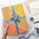 Este papel de embrulho tem uma design moderna do século médio da ascensão solar em tons de vermelho, amarelo e laranja. Provavelmente melhor usado para presentes menores.