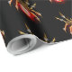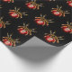 Aranha mecânica, com pá-pá de ouro, engrenagens de latão e uma lâmpada de vidro vermelha sobre fundo preto. Estilo Steampunk.