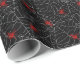 Presente de teia aranha assustadora embrulhada com aranhas vermelhas em um fundo preto. Perfeito para decoração de Halloween e presentes assustadores em outubro!