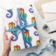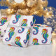 Articulação artificial, brilhante, arco-íris, cavalo de mar poligonal sobre fundo branco. Tatuagem brilhante.
