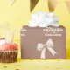 Uma mocha de mocha de café, fundo marrom, texto creme e arco. Feliz Natal é escrito com uma fonte de estilo retrô. Personalizar e adicionar um nome