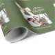 Um fundo verde-oliva mudo, texto colorido creme e um arco. Texto e foto. Feliz Natal é escrito com uma elegante fonte estilo escrita à mão. Personalize e adicione seu nome de família.