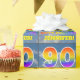 Este design de papel empolgante, divertido e com o tema de aniversário atraente apresenta um plano de fundo azul-céu nublado, um grande número "90" e "FELIZ BIRTHDAY", ambos tendo um espectro multicolorido de arco-íris inspirado em gradiente e um nome editável. O papel de embrulho temático de aniversário como este pode ser uma maneira divertida de embrulhar um presente ou de apresentar a alguém que comemora seu aniversário de 90. [~Z0000372]