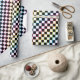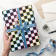 Arte abstrato digital de quadrados brancos e arco-íris em uma formação marcada.